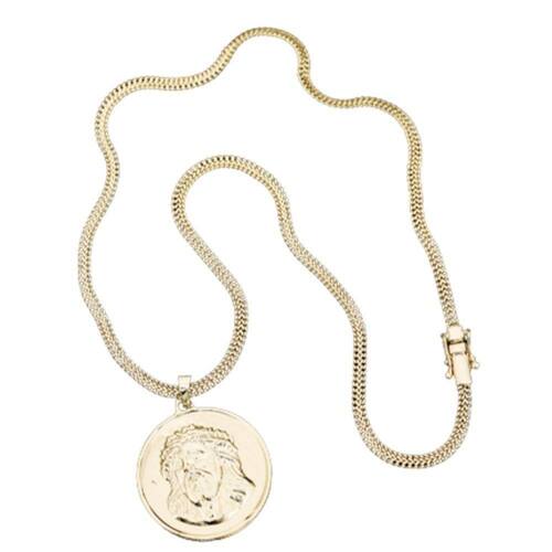 CORRENTE GRUMET LACRAIA FECHO LATERAL DUPL0 (5MM) & PINGENTE MEDALHA REDONDA DE JESUS (G) - BANHADO EM OURO 18K