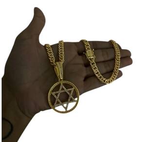 Cordão Grumet 7mm + Pingente Estrela de Davi Banhado a Ouro Informações do Seu Pedido O que acompanha sua compra: - Saquinho de organza para armazenar sua joia com cuidado. - Embalagem em uma caixa elegante, ideal para presente. - Cupom de desconto exclusivo para sua próxima compra. - Flyer apresentando outros produtos da nossa coleção. - Carta de agradecimento especial. - Adesivo da marca ToJoia18k, um toque de carinho. - de 6 meses Especificações do Produto: - Material: Ligas metálicas de alta qualidade, desenvolvidas para fixação e absorção do ouro, finalizadas com verniz protetor. - Tonalidade: Aparência idêntica ao ouro maciço. - Produção: Artesanal, com atenção aos detalhes. - Tipo de banho: Banhadas a ouro 18k com 10 camadas espessas, finalizadas com verniz antialérgico . - Elos: Soldados dependendo do modelo . - Pedras cravejadas: Zircônia brilhante quando aplicável . Também temos produtos com banho a prata da mesma qualidade do ouro Tamanhos Disponíveis: Quando for feminino estará escrito no titulo - Cordões Masculinos: 60cm e 70cm padrão 70cm, consulte disponibilidade para 60cm via chat . - Cordões Femininos: 45cm e 50cm padrão 50cm, consulte disponibilidade para 45cm via chat . Nota: Nem todos os modelos possuem tamanhos femininos Feminino estará escrito no titulo . - Pulseiras: 18cm a 23cm padrão 21cm, consulte outros tamanhos via chat . Nota: Nem todos os modelos possuem tamanhos 18 e 19cm - Pingentes: Fiéis às imagens. Consulte-nos em caso de dúvidas. Espessura recomendada para cordão e pingente: A numeração do pingente estará no titulo Não são todos os modelos que temos do P a o GG - P: 1mm a 4mm - M: 4mm a 8mm - G: 6mm a 13mm - GG: 12mm a 18mm Dúvidas e Informações Adicionais: - : 6 meses termos enviados com o produto . - 7 Dias para devolver sem perguntas. - Prazo de envio: Até 24 horas úteis após confirmação do pagamento. Recomendações de uso: - Evite contato com produtos químicos aguarde o perfume secar antes de usar a peça . - Evite contato com shampoo, condicionadores e atividades físicas que causem suor excessivo. - Armazene em local seco e seguro, como o saquinho de organza fornecido. - Pode ser Utilizado no mar e piscina, mas lave com água corrente e sabão líquido neutro após o uso. Por que escolher ToJoia18k se você busca semi-joias luxuosas que combinem estilo, qualidade e sofisticação, encontrou o lugar certo Nossas peças recebem um banho espesso de ouro 18k, garantindo brilho duradouro e acabamento impecável. Design exclusivo e artesanal, perfeito para qualquer ocasião. Produtos feitos com materiais premium, garantindo durabilidade. Ao adquirir uma semi-joia ToJoia18k, você investe em qualidade, elegância e uma experiência única. Aguardamos sua compra Obs.: Pode ocorrer variação de fecho raramente . Imagens reais, sem edição. Qualquer Dúvida faça uma pergunta. Marca: Não Informado