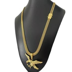Cordão Lacraia 10Mm + Pingente Águia - Banhado A Ouro 18K