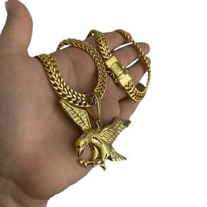Cordão Lacraia 10mm + Pingente Águia - Banhado a Ouro 18k
