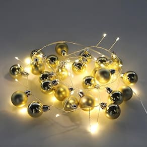 Cordão Luminoso Natalino 1,5 Metros Led Bolas de Natal Taschibra Características Gerais do Produto: Dimensões AxLxP CM : 150 Cor da luz: 3000K Quente Produzido em: Plástico Voltagem: 3 Três Pilhas AA Potência: 0,6W Eficiência luminosa: Decorativo Cor do cabo: Transparente : 90 dias junto ao fabricante Aplicação: Interno ou Abrigado Acompanha lâmpada: Não necessita, LED já integrado Número de lâmpadas: 48 Leds Acompanha o produto: 01 Cordão : 90 dias Marca: Não Informado