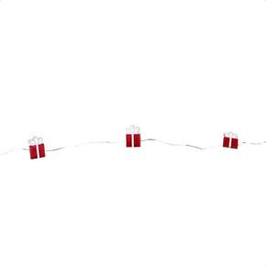 Cordão Luminoso Natalino 3 Metros Led 30 Mini Presentes Taschibra Características Gerais do Produto: Dimensões AxLxP CM : 320 Cor da luz: 3000K Quente Produzido em: Plástico Voltagem: 2 Duas Pilhas AA Potência: 0,6W Eficiência luminosa: Decorativo Cor do cabo: Transparente : 90 dias junto ao fabricante Aplicação: Interno ou Abrigado Acompanha lâmpada: Não necessita, LED já integrado Acompanha o produto: 01 Cordão : 90 dias Marca: Não Informado Ean: 7908781103732