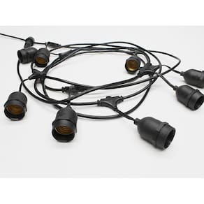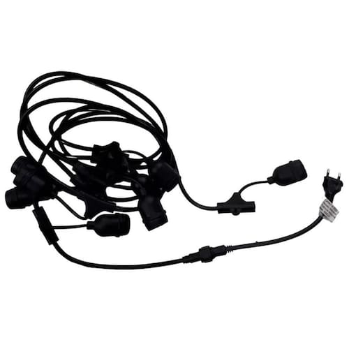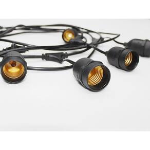 O Cordão Luminoso Taschibra Cipro, possui espaço para 8 lâmpadas e a base de cada soquete é E27, possui um cabo de meio metro e com potência máxima de 200 watts, sendo 25 watts por cada soquete.