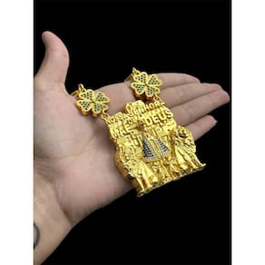 Cordão Nossa Senhora Mãe de Deus Banhado a Ouro 18k Detalhes do Produto: Material: ligas metálicas de alta qualidade, especialmente tratadas para fixação e absorção do ouro, com acabamento em verniz protetor. Aparência: visual idêntico ao ouro maciço. Produção: artesanal, com atenção meticulosa aos detalhes. Banho: 10 camadas espessas de ouro 18k, finalizadas com verniz antialérgico . Elos: soldados varia conforme o modelo . Pedras: zircônias brilhantes cravejadas quando aplicável . Tamanhos Disponíveis: Cordões Masculinos: 70cm padrão e 60cm sob consulta/Pedido Via Chat . Cordões Femininos: 50cm padrão e 45cm sob consulta/Pedido Via Chat . não são todos os modelos que teem o tamanho Feminino Pulseiras: 21cm padrão ; tamanhos de 18cm a 23cm sob consulta/Pedido Via Chat. Pingentes: conforme imagens; consulte para mais detalhes via chat. Espessuras Recomendadas para Cordões / Pingentes: P: 1mm a 4mm M: 4mm a 8mm G: 6mm a 13mm Gg: 12mm a 18mm Incluso na Compra: Saquinho de organza para armazenamento seguro. Caixa elegante, perfeita para presente. Cupom de desconto para a próxima compra. Flyer com outros produtos da coleção. Carta de agradecimento personalizada. Adesivo da marca ToJoia18k. Informações Adicionais: : 6 meses termos acompanham o produto . Devolução: 7 dias para devolução sem questionamentos. Envio: despacho em até 24 horas úteis após confirmação do pagamento. Cuidados com a Peça: Evite contato com produtos químicos; aguarde o perfume secar antes de usar. Evite contato com shampoo, condicionadores e suor excessivo. Armazene em local seco, preferencialmente no saquinho de organza fornecido. Uso no mar e piscina é permitido; lave com água corrente e sabão neutro após. Por que Escolher a ToJoia18k Semi-joias luxuosas que combinam estilo, qualidade e sofisticação. Banho espesso de ouro 18k, garantindo brilho duradouro e acabamento impecável. Design exclusivo e produção artesanal, perfeitos para qualquer ocasião. Materiais premium que asseguram durabilidade. Ao escolher uma semi-joia ToJoia18k, você investe em qualidade, elegância e uma experiência única. Aguardamos sua compra Observação: pode ocorrer variação no fecho raramente . Imagens reais, sem edição. Qualquer dúvida, estamos à disposição para esclarecimentos. Marca: Não Informado