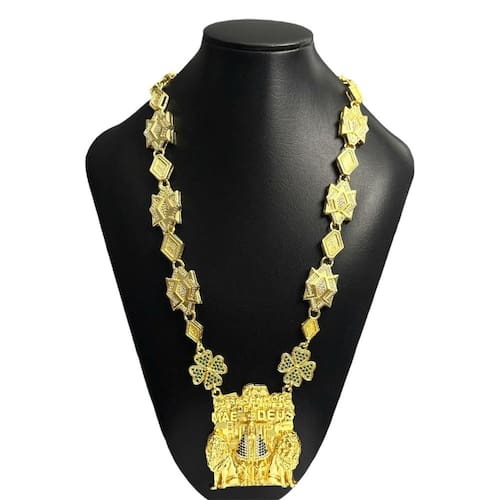 Cordão Personalizado Rogai por Nós Banhado a Ouro 18k Detalhes do Produto: Material: ligas metálicas de alta qualidade, especialmente tratadas para fixação e absorção do ouro, com acabamento em verniz protetor. Aparência: visual idêntico ao ouro maciço. Produção: artesanal, com atenção meticulosa aos detalhes. Banho: 10 camadas espessas de ouro 18k, finalizadas com verniz antialérgico . Elos: soldados varia conforme o modelo . Pedras: zircônias brilhantes cravejadas quando aplicável . Tamanhos Disponíveis: Cordões Masculinos: 70cm padrão e 60cm sob consulta/Pedido Via Chat . Cordões Femininos: 50cm padrão e 45cm sob consulta/Pedido Via Chat . não são todos os modelos que teem o tamanho Feminino Pulseiras: 21cm padrão ; tamanhos de 18cm a 23cm sob consulta/Pedido Via Chat. Pingentes: conforme imagens; consulte para mais detalhes via chat. Espessuras Recomendadas para Cordões / Pingentes: P: 1mm a 4mm M: 4mm a 8mm G: 6mm a 13mm Gg: 12mm a 18mm Incluso na Compra: Saquinho de organza para armazenamento seguro. Caixa elegante, perfeita para presente. Cupom de desconto para a próxima compra. Flyer com outros produtos da coleção. Carta de agradecimento personalizada. Adesivo da marca ToJoia18k. Informações Adicionais: : 6 meses termos acompanham o produto . Devolução: 7 dias para devolução sem questionamentos. Envio: despacho em até 24 horas úteis após confirmação do pagamento. Cuidados com a Peça: Evite contato com produtos químicos; aguarde o perfume secar antes de usar. Evite contato com shampoo, condicionadores e suor excessivo. Armazene em local seco, preferencialmente no saquinho de organza fornecido. Uso no mar e piscina é permitido; lave com água corrente e sabão neutro após. Por que Escolher a ToJoia18k Semi-joias luxuosas que combinam estilo, qualidade e sofisticação. Banho espesso de ouro 18k, garantindo brilho duradouro e acabamento impecável. Design exclusivo e produção artesanal, perfeitos para qualquer ocasião. Materiais premium que asseguram durabilidade. Ao escolher uma semi-joia ToJoia18k, você investe em qualidade, elegância e uma experiência única. Aguardamos sua compra Observação: pode ocorrer variação no fecho raramente . Imagens reais, sem edição. Qualquer dúvida, estamos à disposição para esclarecimentos. Marca: Não Informado Ean: 7898608985682