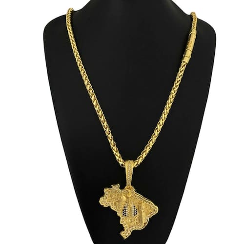 Cordão Peruano 8mm + Pingente Santa Brasil - Banhado a Ouro Detalhes do Produto: Material: ligas metálicas de alta qualidade, especialmente tratadas para fixação e absorção do ouro, com acabamento em verniz protetor. Aparência: visual idêntico ao ouro maciço. Produção: artesanal, com atenção meticulosa aos detalhes. Banho: 10 camadas espessas de ouro 18k, finalizadas com verniz antialérgico . Elos: soldados varia conforme o modelo . Pedras: zircônias brilhantes cravejadas quando aplicável . Tamanhos Disponíveis: Cordões Masculinos: 70cm padrão e 60cm sob consulta/Pedido Via Chat . Cordões Femininos: 50cm padrão e 45cm sob consulta/Pedido Via Chat . Pulseiras: 21cm padrão ; tamanhos de 18cm a 23cm sob consulta/Pedido Via Chat. Pingentes: conforme imagens; consulte para mais detalhes via chat. Espessuras Recomendadas para Cordões / Pingentes: P: 1mm a 4mm M: 4mm a 8mm G: 6mm a 13mm Gg: 12mm a 18mm Incluso na Compra: Saquinho de organza para armazenamento seguro. Caixa elegante, perfeita para presente. Cupom de desconto para a próxima compra. Flyer com outros produtos da coleção. Carta de agradecimento personalizada. Adesivo da marca ToJoia18k. Informações Adicionais: : 6 meses termos acompanham o produto . Devolução: 7 dias para devolução sem questionamentos. Envio: despacho em até 24 horas úteis após confirmação do pagamento. Cuidados com a Peça: Evite contato com produtos químicos; aguarde o perfume secar antes de usar. Evite contato com shampoo, condicionadores e suor excessivo. Armazene em local seco, preferencialmente no saquinho de organza fornecido. Uso no mar e piscina é permitido; lave com água corrente e sabão neutro após. Por que Escolher a ToJoia18k Semi-joias luxuosas que combinam estilo, qualidade e sofisticação. Banho espesso de ouro 18k, garantindo brilho duradouro e acabamento impecável. Design exclusivo e produção artesanal, perfeitos para qualquer ocasião. Materiais premium que asseguram durabilidade. Ao escolher uma semi-joia ToJoia18k, você investe em qualidade, elegância e uma experiência única. Aguardamos sua compra Observação: pode ocorrer variação no fecho raramente . Imagens reais, sem edição. Qualquer dúvida, estamos à disposição para esclarecimentos. Marca: Tojoia18K