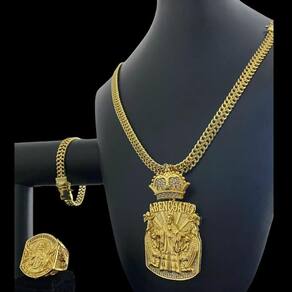 Cordão + Pingente + Pulseira + Anel 10mm - Banhado a Ouro Informações do Seu Pedido O que acompanha sua compra: