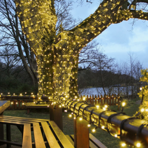Cordão led à prova d'água* com 100 lâmpadas de LED's fixos, não pisca. Pode ser utilizado para decoração externa, como em árvores, postes ou fachadas. Para decoração interna como árvore de Natal, escadas, ou onde sua imaginação permitir.