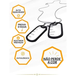 Cordão Placa Identificação Exército Dog Tag Aço Inox Lisa