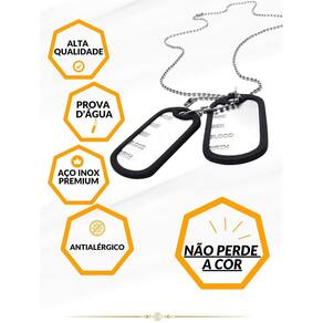 Cordão Placa Identificação Exército Dog Tag Aço Inox Lisa