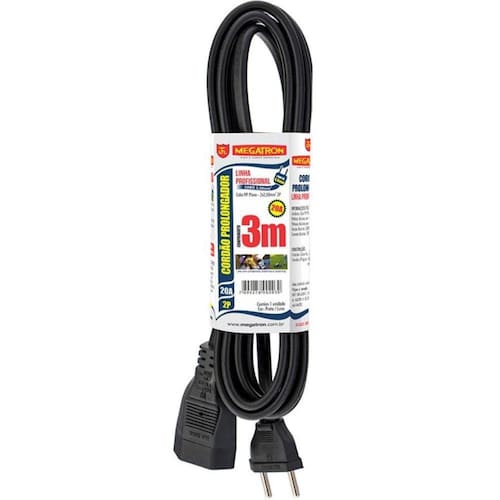CORDAO PROLONGADOR PP 2X2,50X3,00MT 2P 20A/250V PT MEGATRONApresentamos os cordões prolongadores 20A, produtos de qualidade e que garantem segurança aos usuários, atendendo ao novo padrão brasileiro de plugues e tomadas (NBR 14136).Modelo: Cordão Prolongador 20AAmperagem: 20A / 250VEspessura do cabo: 2,50mm²Número de tomadas: 01*Ideal para: Para prolongar a tomada dos equipamentos para distancias longas, de até 3,00 mt. É utilizado geralmente em trabalhos com betoneiras, cortadores de gramas, ferramentas, entre outros.**Imagens meramente ilustrativa.*Marca: MegatronCódigo:79873