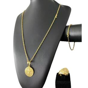 Cordão + Pulseira 2mm & Anel São Bento Banhado A Ouro Informações do seu Pedido: Acompanha: Saquinho de organza para armazenar sua joia Enviado em caixa Cupom de desconto para a próxima compra Flyer com outros produtos Cartão de contato para futuras dúvidas Carta de agradecimento Adesivo da marca Especificações: Material: Composto de ligas de metais, eficazes para absorção e fixação do OURO no banho, finalizado com verniz protetor. Tonalidade: Cor idêntica ao ouro maciço puro. Produção: Manual. Tipo de Banho: Peças banhadas a ouro 18k com 10 camadas grossas de ouro 18k. Ao final, recebem uma camada protetora de verniz antialérgico . Elos: Soldados Dependendo do modelo . Pedras Cravejadas: Zircônia brilhante Quando o produto é cravejado . Tamanhos Disponíveis: Cordão Masculino: 60cm e 70cm 70cm enviado por padrão, consulte disponibilidade para 60cm via chat . Cordão Feminino: 45cm e 50cm 50cm enviado por padrão, consulte disponibilidade para 45cm via chat . Obs: Não são todos os modelos que temos tamanhos femininos, Consulte. Pulseiras: 18cm, 19cm, 20cm, 21cm, 22cm, 23cm 21cm enviado por padrão, consulte disponibilidade para outros tamanhos via chat . Espessura recomendado tamanho Cordão/Pingente: P: 1mm a 4mm M: 4mm a 8mm G: 6mm a 13mm GG: 12mm a 18mm Dúvidas e Informações: : 6 meses termos enviados com o produto . Prazo de Entrega: Envio em até 24 horas úteis após a confirmação do pagamento. Recomendações de Uso: Para garantir a longevidade e o brilho duradouro das suas semi-joias ToJoia18k, recomendamos alguns cuidados simples: Evite contato com produtos químicos, como perfumes espere secar para colocar a peça e produtos de limpeza. Evite contato com shampoo, condicionador e atividades físicas de alto suor. Armazene-as em local seco e seguro, preferencialmente em embalagem macia, para evitar arranhões. Pode usar no mar e piscina, mas lave com água corrente e sabão líquido neutro após o banho. Por que Comprar Conosco Descubra as deslumbrantes semi-joias banhadas a ouro 10 milésimos da ToJoia18k. Se você busca acessórios luxuosos que combinem estilo, qualidade excepcional e um toque de elegância, sua busca termina aqui. Cada peça da nossa coleção é cuidadosamente fabricada com um banho de ouro 10 milésimos, garantindo um acabamento impecável e brilho duradouro. Nossas semi-joias são projetadas para elevar qualquer visual, seja para uma ocasião especial ou para o dia a dia. Apresentamos designs exclusivos e sofisticados, desde brincos encantadores a colares deslumbrantes e anéis elegantes. Combinando artesanato excepcional e detalhes requintados, cada semi-joia é uma obra-prima que impressiona. Ao adquirir uma semi-joia ToJoia18k, você está investindo em qualidade e estilo. Nossas peças são feitas com materiais premium, garantindo durabilidade e resistência ao desgaste. Com os cuidados adequados, você poderá desfrutar do brilho radiante por muitos anos. Aguardamos sua compra. Você não irá se arrepender Agora, que comece a nossa história. Obs: Descrição PADRÃO para todos os anúncios