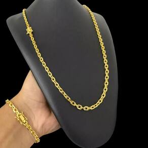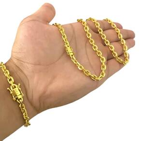 Cordão + Pulseira 5mm Cadeado Banhado A Ouro 18k Fecho 750 Informações do seu Pedido: Acompanha: Saquinho de organza para armazenar sua joia Enviado em caixa Cupom de desconto para a próxima compra Flyer com outros produtos Cartão de contato para futuras dúvidas Carta de agradecimento Adesivo da marca Especificações: Material: Composto de ligas de metais, eficazes para absorção e fixação do OURO no banho, finalizado com verniz protetor. Tonalidade: Cor idêntica ao ouro maciço puro. Produção: Manual. Tipo de Banho: Peças banhadas a ouro 18k com 10 camadas grossas de ouro 18k. Ao final, recebem uma camada protetora de verniz antialérgico . Elos: Soldados Dependendo do modelo . Pedras Cravejadas: Zircônia brilhante Quando o produto é cravejado . Tamanhos Disponíveis: Cordão Masculino: 60cm e 70cm 70cm enviado por padrão, consulte disponibilidade para 60cm via chat . Cordão Feminino: 45cm e 50cm 50cm enviado por padrão, consulte disponibilidade para 45cm via chat . Obs: Não são todos os modelos que temos tamanhos femininos, Consulte. Pulseiras: 18cm, 19cm, 20cm, 21cm, 22cm, 23cm 21cm enviado por padrão, consulte disponibilidade para outros tamanhos via chat . Espessura recomendado tamanho Cordão/Pingente: P: 1mm a 4mm M: 4mm a 8mm G: 6mm a 13mm GG: 12mm a 18mm Dúvidas e Informações: : 6 meses termos enviados com o produto . Prazo de Entrega: Envio em até 24 horas úteis após a confirmação do pagamento. Recomendações de Uso: Para garantir a longevidade e o brilho duradouro das suas semi-joias ToJoia18k, recomendamos alguns cuidados simples: Evite contato com produtos químicos, como perfumes espere secar para colocar a peça e produtos de limpeza. Evite contato com shampoo, condicionador e atividades físicas de alto suor. Armazene-as em local seco e seguro, preferencialmente em embalagem macia, para evitar arranhões. Pode usar no mar e piscina, mas lave com água corrente e sabão líquido neutro após o banho. Por que Comprar Conosco Descubra as deslumbrantes semi-joias banhadas a ouro 10 milésimos da ToJoia18k. Se você busca acessórios luxuosos que combinem estilo, qualidade excepcional e um toque de elegância, sua busca termina aqui. Cada peça da nossa coleção é cuidadosamente fabricada com um banho de ouro 10 milésimos, garantindo um acabamento impecável e brilho duradouro. Nossas semi-joias são projetadas para elevar qualquer visual, seja para uma ocasião especial ou para o dia a dia. Apresentamos designs exclusivos e sofisticados, desde brincos encantadores a colares deslumbrantes e anéis elegantes. Combinando artesanato excepcional e detalhes requintados, cada semi-joia é uma obra-prima que impressiona. Ao adquirir uma semi-joia ToJoia18k, você está investindo em qualidade e estilo. Nossas peças são feitas com materiais premium, garantindo durabilidade e resistência ao desgaste. Com os cuidados adequados, você poderá desfrutar do brilho radiante por muitos anos. Aguardamos sua compra. Você não irá se arrepender Agora, que comece a nossa história. Obs: Descrição PADRÃO para todos os anúncios