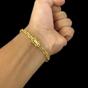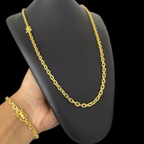 Cordão + Pulseira 5mm Cadeado Banhado A Ouro 18k Fecho 750 Informações do seu Pedido: Acompanha: Saquinho de organza para armazenar sua joia Enviado em caixa Cupom de desconto para a próxima compra Flyer com outros produtos Cartão de contato para futuras dúvidas Carta de agradecimento Adesivo da marca Especificações: Material: Composto de ligas de metais, eficazes para absorção e fixação do OURO no banho, finalizado com verniz protetor. Tonalidade: Cor idêntica ao ouro maciço puro. Produção: Manual. Tipo de Banho: Peças banhadas a ouro 18k com 10 camadas grossas de ouro 18k. Ao final, recebem uma camada protetora de verniz antialérgico . Elos: Soldados Dependendo do modelo . Pedras Cravejadas: Zircônia brilhante Quando o produto é cravejado . Tamanhos Disponíveis: Cordão Masculino: 60cm e 70cm 70cm enviado por padrão, consulte disponibilidade para 60cm via chat . Cordão Feminino: 45cm e 50cm 50cm enviado por padrão, consulte disponibilidade para 45cm via chat . Obs: Não são todos os modelos que temos tamanhos femininos, Consulte. Pulseiras: 18cm, 19cm, 20cm, 21cm, 22cm, 23cm 21cm enviado por padrão, consulte disponibilidade para outros tamanhos via chat . Espessura recomendado tamanho Cordão/Pingente: P: 1mm a 4mm M: 4mm a 8mm G: 6mm a 13mm GG: 12mm a 18mm Dúvidas e Informações: : 6 meses termos enviados com o produto . Prazo de Entrega: Envio em até 24 horas úteis após a confirmação do pagamento. Recomendações de Uso: Para garantir a longevidade e o brilho duradouro das suas semi-joias ToJoia18k, recomendamos alguns cuidados simples: Evite contato com produtos químicos, como perfumes espere secar para colocar a peça e produtos de limpeza. Evite contato com shampoo, condicionador e atividades físicas de alto suor. Armazene-as em local seco e seguro, preferencialmente em embalagem macia, para evitar arranhões. Pode usar no mar e piscina, mas lave com água corrente e sabão líquido neutro após o banho. Por que Comprar Conosco Descubra as deslumbrantes semi-joias banhadas a ouro 10 milésimos da ToJoia18k. Se você busca acessórios luxuosos que combinem estilo, qualidade excepcional e um toque de elegância, sua busca termina aqui. Cada peça da nossa coleção é cuidadosamente fabricada com um banho de ouro 10 milésimos, garantindo um acabamento impecável e brilho duradouro. Nossas semi-joias são projetadas para elevar qualquer visual, seja para uma ocasião especial ou para o dia a dia. Apresentamos designs exclusivos e sofisticados, desde brincos encantadores a colares deslumbrantes e anéis elegantes. Combinando artesanato excepcional e detalhes requintados, cada semi-joia é uma obra-prima que impressiona. Ao adquirir uma semi-joia ToJoia18k, você está investindo em qualidade e estilo. Nossas peças são feitas com materiais premium, garantindo durabilidade e resistência ao desgaste. Com os cuidados adequados, você poderá desfrutar do brilho radiante por muitos anos. Aguardamos sua compra. Você não irá se arrepender Agora, que comece a nossa história. Obs: Descrição PADRÃO para todos os anúncios