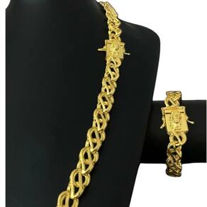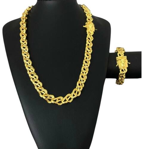 Cordão + Pulseira Friso s 12mm Jesus Cristo - Banhado a Ouro Detalhes do Produto: Material: ligas metálicas de alta qualidade, especialmente tratadas para fixação e absorção do ouro, com acabamento em verniz protetor. Aparência: visual idêntico ao ouro maciço. Produção: artesanal, com atenção meticulosa aos detalhes. Banho: 10 camadas espessas de ouro 18k, finalizadas com verniz antialérgico . Elos: soldados varia conforme o modelo . Pedras: zircônias brilhantes cravejadas quando aplicável . Tamanhos Disponíveis: Cordões Masculinos: 70cm padrão e 60cm sob consulta/Pedido Via Chat . Cordões Femininos: 50cm padrão e 45cm sob consulta/Pedido Via Chat . Pulseiras: 21cm padrão ; tamanhos de 18cm a 23cm sob consulta/Pedido Via Chat. Pingentes: conforme imagens; consulte para mais detalhes via chat. Espessuras Recomendadas para Cordões / Pingentes: P: 1mm a 4mm M: 4mm a 8mm G: 6mm a 13mm Gg: 12mm a 18mm Incluso na Compra: Saquinho de organza para armazenamento seguro. Caixa elegante, perfeita para presente. Cupom de desconto para a próxima compra. Flyer com outros produtos da coleção. Carta de agradecimento personalizada. Adesivo da marca ToJoia18k. Informações Adicionais: : 6 meses termos acompanham o produto . Devolução: 7 dias para devolução sem questionamentos. Envio: despacho em até 24 horas úteis após confirmação do pagamento. Cuidados com a Peça: Evite contato com produtos químicos; aguarde o perfume secar antes de usar. Evite contato com shampoo, condicionadores e suor excessivo. Armazene em local seco, preferencialmente no saquinho de organza fornecido. Uso no mar e piscina é permitido; lave com água corrente e sabão neutro após. Por que Escolher a ToJoia18k Semi-joias luxuosas que combinam estilo, qualidade e sofisticação. Banho espesso de ouro 18k, garantindo brilho duradouro e acabamento impecável. Design exclusivo e produção artesanal, perfeitos para qualquer ocasião. Materiais premium que asseguram durabilidade. Ao escolher uma semi-joia ToJoia18k, você investe em qualidade, elegância e uma experiência única. Aguardamos sua compra Observação: pode ocorrer variação no fecho raramente . Imagens reais, sem edição. Qualquer dúvida, estamos à disposição para esclarecimentos. Marca: Não Informado