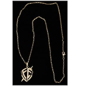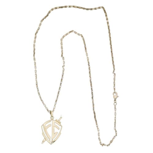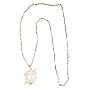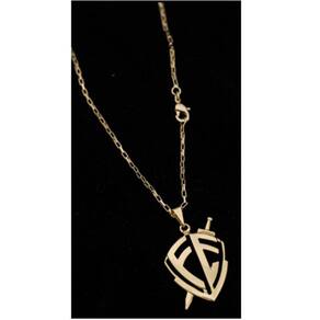 CORRENTE TIJOLINHO VENEZIANA FECHO LAGOSTA (1,5MM) & PINGENTE ESCUDO FÉ VAZADO (MENOR) - BANHADO EM OURO 18K