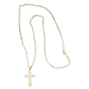 CORRENTE TIJOLINHO VENEZIANA FECHO CANHÃO (3MM) & PINGENTE CRUZ VITORIANA DUPLA (P) - BANHADO EM OURO 18K