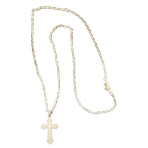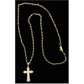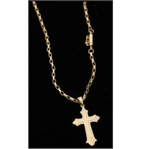 CORRENTE TIJOLINHO VENEZIANA FECHO CANHÃO (3MM) & PINGENTE CRUZ VITORIANA DUPLA (P) - BANHADO EM OURO 18K