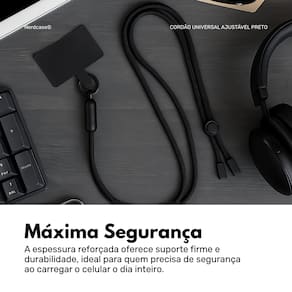O Cordão Universal da Nerdcase é a escolha ideal pra quem busca funcionalidade com estilo. Produzido com material resistente e ferragens em termoplástico reforçado, ele oferece segurança e leveza no uso diário. Com 75cm de comprimento e 0,5mm de espessura, é compatível com qualquer modelo de celular por meio da base universal inclusa. Ideal para o dia a dia, shows, rolês e até no trampo. Um acessório prático e confiável com o DNA da Nerdcase.