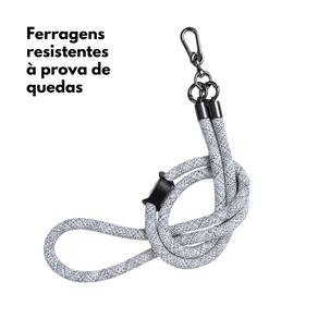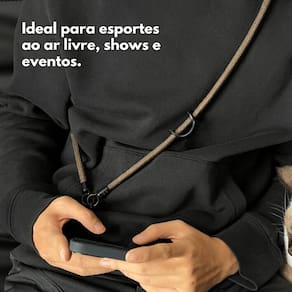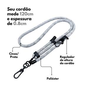 O Cordão Universal para Celular da NERDCASE é feito em poliéster trançado de alta resistência, com design cinza rajado moderno que combina com tudo. Ideal para manter o celular sempre por perto com conforto e segurança, ele conta com mosquetões metálicos e adaptador universal que funciona com qualquer capa que tenha entrada para carregador. Pode ser utilizado no pescoço ou estilo tiracolo, perfeito para o dia a dia, eventos ou viagens.