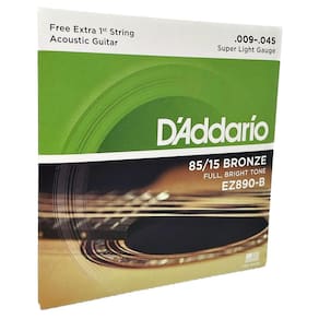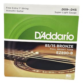 Somos Distribuidores Autorizados A linha de cordas de aço D'Addario 09 Bronze vão te surpreender com o brilho no som, sustain e durabilidade. Proporcionam um timbre perfeito por músicos em todo o mundo. - Modelo EZ 890-B - Tensão Extra Light - Contém 6 cordas de aço + 1 extra - Presas com bolinhas coloridas Marca: Não Informado Ean: 7806126121406