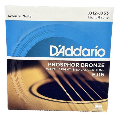 - Modelo EJ 16 - Phosphor Bronze - Tensão .012 - Light Gauge média - Contém 6 cordas em aço - Presas com bolinhas Ean: 7806126982700