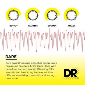 - As cordas acústicas para baixo raras são construídas com um fio de bronze de fósforo enrolado em um núcleo redondo, proporcionando um som mais pesado e um fundo mais profundo