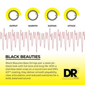 DR Strings Cordas de baixo, Black Beauties BASS cordas de baixo revestidas de níquel revestidas de preto em núcleo redondo