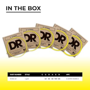 Dr Strings nyb5 – 40 Níquel revestido Bass Guitar Strings, claro- fotoluminescente- Longa duração- Sem perda de tom