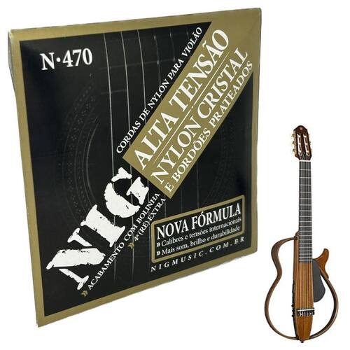 Distribuidor Autorizado Está a procura de cordas de qualidade para o seu violão A linha de encordoamentos NIG vão te surpreender com o brilho no som, sustain e durabilidade. Proporcionam um timbre perfeito Utilizado por músicos em todo o Brasil - Modelo N470 - Tensão Alta 029-044 - Com bolinhas - contém 6 cordas em nylon + 1 corda extra D ré + palheta Marca: Nig N470