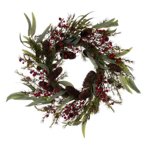 Coroa de folhas artificiais verdes Vickerman de 22 polegadas.