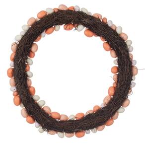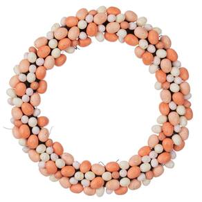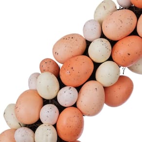 Coroa de flores artificiais de coral e ovos de páscoa brancos Vickerman de 24". Apresenta ovos de Páscoa em uma base de videira.