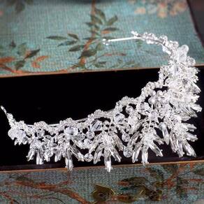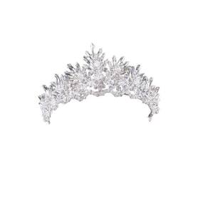 Tiara tipo coroa prateada com pedras de strass de alta qualidade e brilho.