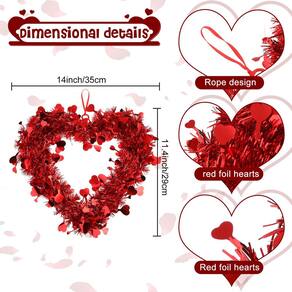 Características: Ideal para decorar portas frontais, paredes, janelas, casamentos, arcos ou qualquer outro lugar, bem como para festas do dia dos namorados, casamentos, aniversários, chás de panela, salas de aula, lojas, portas da frente ou escritórios. Especificações: Material: fio e PET Cor: vermelha. Diâmetro: 30 cm. Observação: A cor real pode diferir ligeiramente da imagem devido a diferentes efeitos de exibição e iluminação. Devido à medição manual, considere um desvio de 1 a 3 mm. - Produto incluído: você receberá 6 peças de guirlandas de coração vermelho temáticas do Dia dos Namorados, cada uma com um cordão vermelho que você pode pendurar onde quiser, permitindo que todos saibam que o amor é bem-vindo aqui - Informações de tamanho: com um diâmetro de 30 cm/12 polegadas, a guirlanda em forma de coração é grande o suficiente para pendurar em uma parede ou porta e ajudar a adicionar romance - Material: a guirlanda de dia dos namorados é feita de filamentos de metal finos, com moldura interna de plástico; a guirlanda é bonita e pode ser aplicada por um longo tempo e vem com uma fita que pode ser pendurada diretamente do topo, exatamente onde você precisa decorar - Design bonito: a guirlanda tem a forma de um coração, com coração de folha vermelha, sob a luz parece brilhante e brilhante, o coração vermelho está sempre associado ao amor, deixe sua festa e casa cheios de atmosfera romântica - Uso amplo: você pode usá-los para decorar janelas, tetos, paredes, mesas, adequados para o dia dos namorados, casamentos, noivados, aniversários, festas de aniversário e outras ocasiões e celebrações importantes