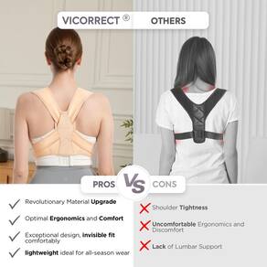 - Uma vida livre de dor [alívio da dor] O corretor de postura do alisador de costas Vicorrect é projetado para aliviar a dor de corcunda, pescoço e costas causada por trabalho de longo prazo e olhando para celular e computador; Este suporte para as costas é especialmente adequado para pessoas com um leve corcunda, pessoas com cabeças curvadas, trabalhadores de mesa de longo prazo e trabalhadores de escritório; oferece o melhor suporte para as costas para você