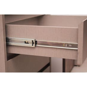 Corrediça telescópica de abertura total e prolongamento de curso do comprimento nominal. Deslizamento através de esferas de aço proporcionando deslizamento suave, preciso e resistente. Autotravante no final do curso aberto e travas no final do curso que permitem a retirada do QPS.