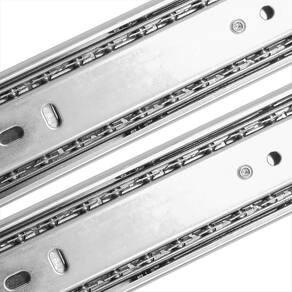 Fabricada em aço zincado de alta qualidade, essa corrediça oferece resistência e durabilidade. Com uma capacidade de carga de até 25kg, ela suporta o peso das suas gavetas de forma confiável. Com altura de 45mm e espessura de 1.0x1.0x1.2mm, ela garante estabilidade e suavidade no movimento.