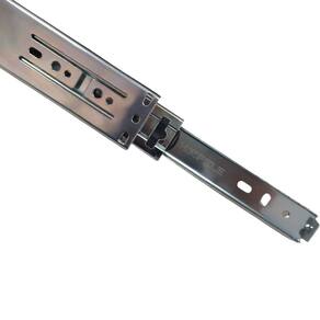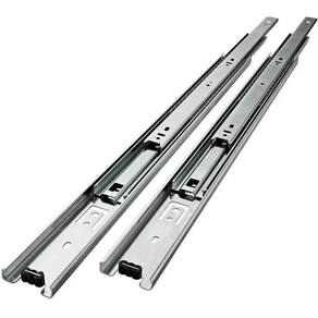 corrediça telescópica de abertura total, com deslizamento por de aço. Peça única de montagem lateral e autotravante no final do curso, com travas que permitem a retirada da gaveta. Componentes incluídos na embalagem: código: 420. 48. 982 01- par de corrediça telescópica h45-s 350mm