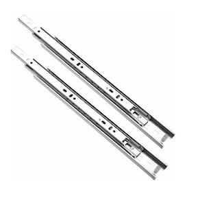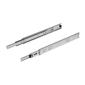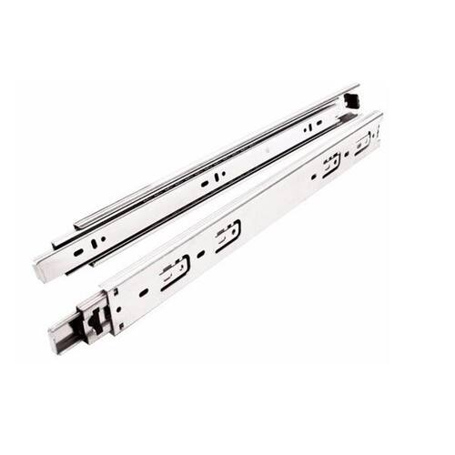 Par corrediça telescópica trilho 45 cm comprimento corrediça telescópica de abertura total, com deslizamento por de aço. Peça única de montagem lateral e autotravante no final do curso, com travas que permitem a retirada da gaveta. Material: aço relaminado acabamento: zinco eletrolítico cromatizado azul tamanho: 45 cm capacidade: 37 kg por par