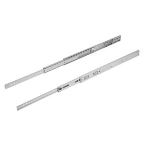 Marca: FGVTN Acabamento: Zinco acetinado Material: Aço relaminado Fixação: Lateral Capacidade: 35 kg par Descrição: Corrediça telescópica com abertura total do comprimento nominal com deslizamento através de de aço. Fechamento suave das gavetas com o sistema slow motion, que evita que a gaveta bata ao fechar. Peça única de montagem lateral autotravante no final do curso aberto e travas no final do curso que permitem a retirada da gaveta. Pode ser utilizada em armários de cozinhas, escritórios, closets, prateleiras retráteis/extensíveis e móveis em geral. Atenção: Imagem meramente ilustrativa, podendo conter alguma diferença em sua tonalidade. Marca: Não Informado