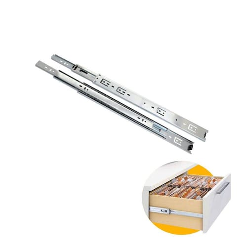 O trilho telescópico H35 light possibilita a abertura total da gaveta com deslizamento suave, preciso e resistente. Sua praticidade com travas laterais permite a retirada da gaveta.