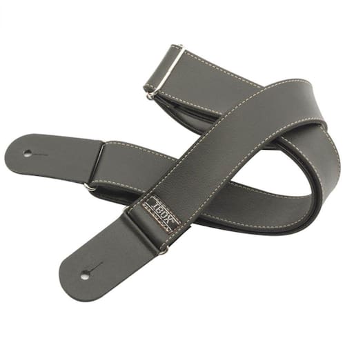 Possui 5cm de largura e ponteiras de couro duplo, peças em metal.
