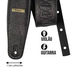 Correia Basso Sintetico CLA47 7cm Acolchoada Gliter Preto