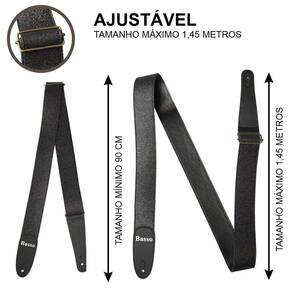Especificações: - Correia para guitarra, violão e contrabaixo, reciclável, produzida em sintético; - Ajustável entre 92 cm e 145 cm de comprimento; Largura de 5cm no ombro - Reforço na ponteira, evitando que esgace com o tempo + segurança ; - Forro sintético para evitar a absorção do suor; A BASSO Ecostrap é uma empresa especializada em design e comercialização de acessórios para instrumentos musicais, com destaque para as correias. Com sede no Rio Grande do Sul, possui 22 anos de experiência e busca aperfeiçoar seus produtos com base no feedback dos músicos. Sua matriz em Novo Hamburgo facilita o acesso às melhores tecnologias de produção. Líder de mercado, a BASSO Ecostrap oferece correias de alta qualidade, unindo estilo, segurança e conforto para músicos.