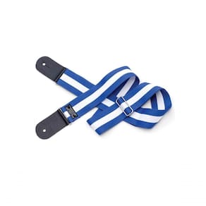 CORREIA COMFORT 5CM LISTRAS COM PONTEIRAS DE COURO CK509 AZUL Correia Comfort feita em tecido especial com 5 centímetros de largura e ponteiras de couro duplo, arte em listras. As ponteiras em couro duplo da Correia Comfort garantem maior proteção para o seu equipamento enquanto estiver tocando. Estilo Tenha um visual único com a linha comfort. CARACTERÍSTICA TÉCNICA: Cor: Azul e branco Dimensões: 5 cm de largura Capacidade: Até 12 kg Ponteiras: Couro duplo