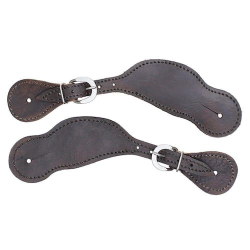 Correia de espora larga Bronc-Steel fabricada em couro na cor Café com costuras reforçadas e fivelas de aço inox para regulagem.