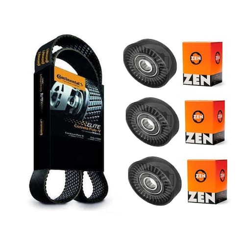 Conteúdo do kit: Correia de acessórios Poly V Contitech 5PK1765 (linha Elite) 01 Rolamento de apoio ZEN 12896 (76mm); Código (PN) da montadora: Mercedes Benz 166 202 0519; 01 Rolamento de apoio ZEN 12862 (70mm); Código (PN) da montadora: Mercedes Benz 166 202 0419 e 266 202 0019; 01 Rolamento de apoio ZEN 12762 (65mm); Código (PN) da montadora: Mercedes Benz 640 202 0419;