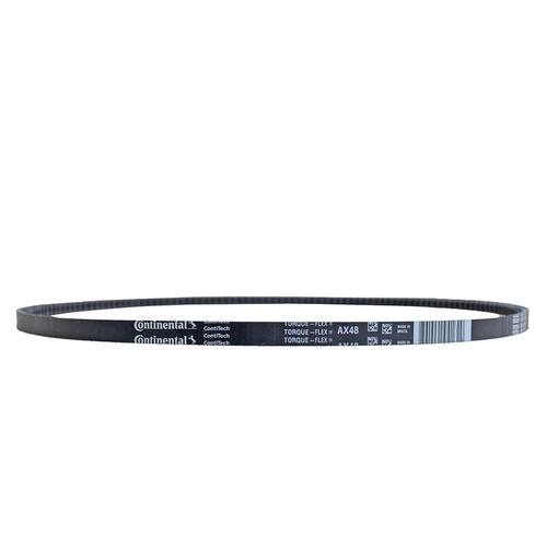 Com uma circunferência de 1219,2mm e largura de 1/2 pol 12,7mm , a correia em V Continental Ax-48 é composta por borracha natural que mantém os cordonéis na posição correta e protege contra danos causados pela compressão. Além disso, possui tecido de algodão impregnado com borracha natural, que protege os componentes internos da abrasão e do óleo. Os fios de fibra sintética garantem a transmissão de força necessária.