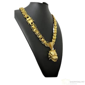 Cordão 15mm Dubai + Pingente Pitbull Banhado A Ouro 18k