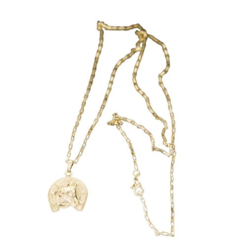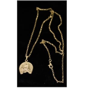 CORRENTE TIJOLINHO VENEZIANA FECHO LAGOSTA (1,5MM) & PINGENTE CAVALO E FERRADURA 2 (P) - BANHADO EM OURO 18K